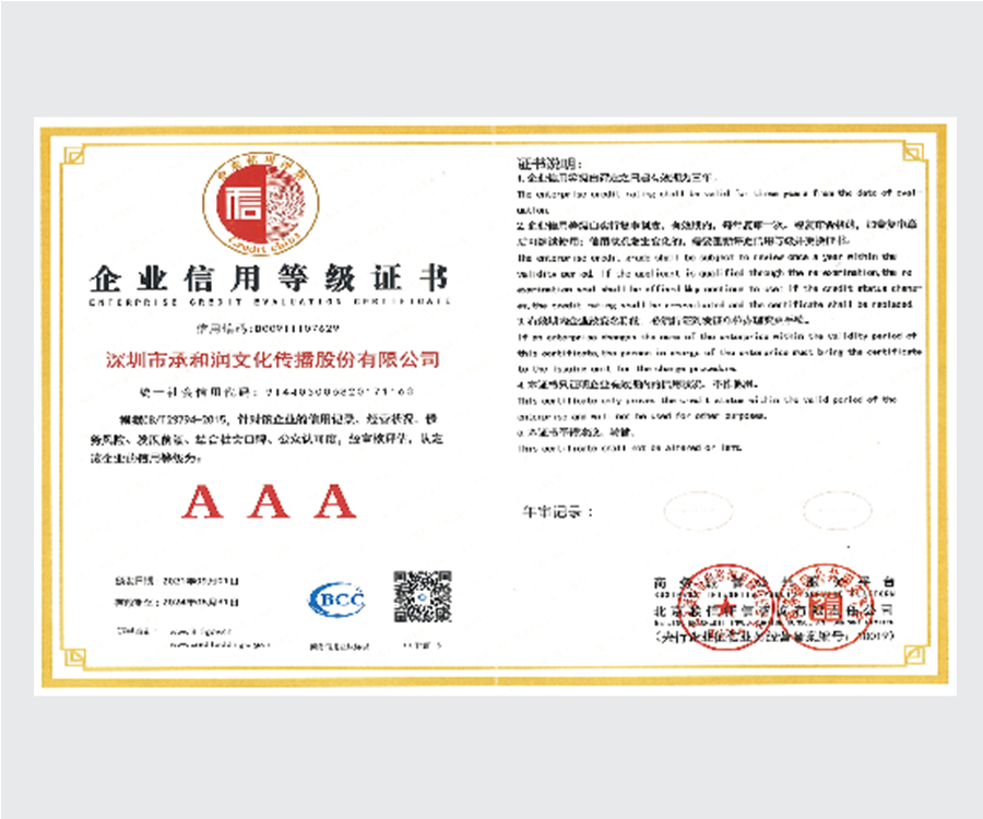 國家高新技術(shù)企業(yè)證書 AAA信用等級企業(yè)