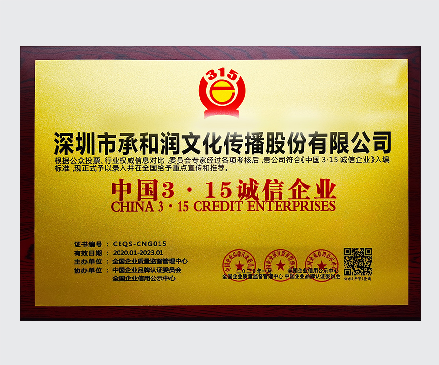 2020年,榮獲全國質(zhì)量信譽雙保障示范單位、中國3.15誠信企業(yè);